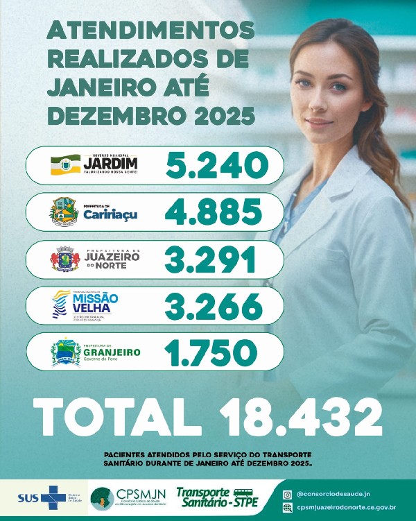 De janeiro a dezembro de 2025, foram 18.432 pacientes atendidos, fortalecendo a regionalização da saúde e reduzindo barreiras de acesso aos serviços especializados.