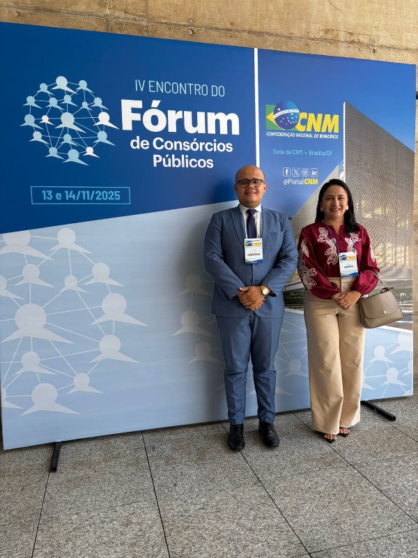 A Secretária Executiva do CPSMJN, Sarah Rachel, e o Agente de Contratação, Dr. Igor Lima, participaram do IV Fórum Nacional dos Consórcios Públicos, realizado pela CNM em Brasília. O evento reuniu gestores de todo o país para discutir a modernização da Lei nº 11.107/2005 e os desafios da gestão consorciada.